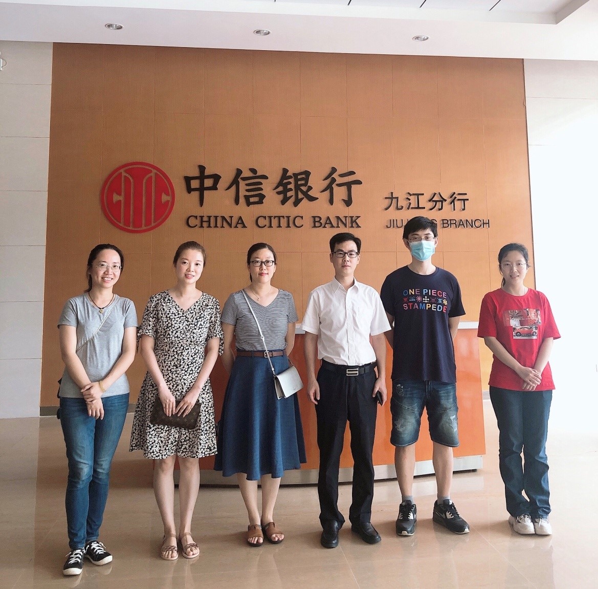 2020年7月9日,财税金融学院党总支副书记王怡然、金融教研室主任龚奕带队先后走访了中信银行九江分行和中国银行南湖支行,开展企业走访调研活动。