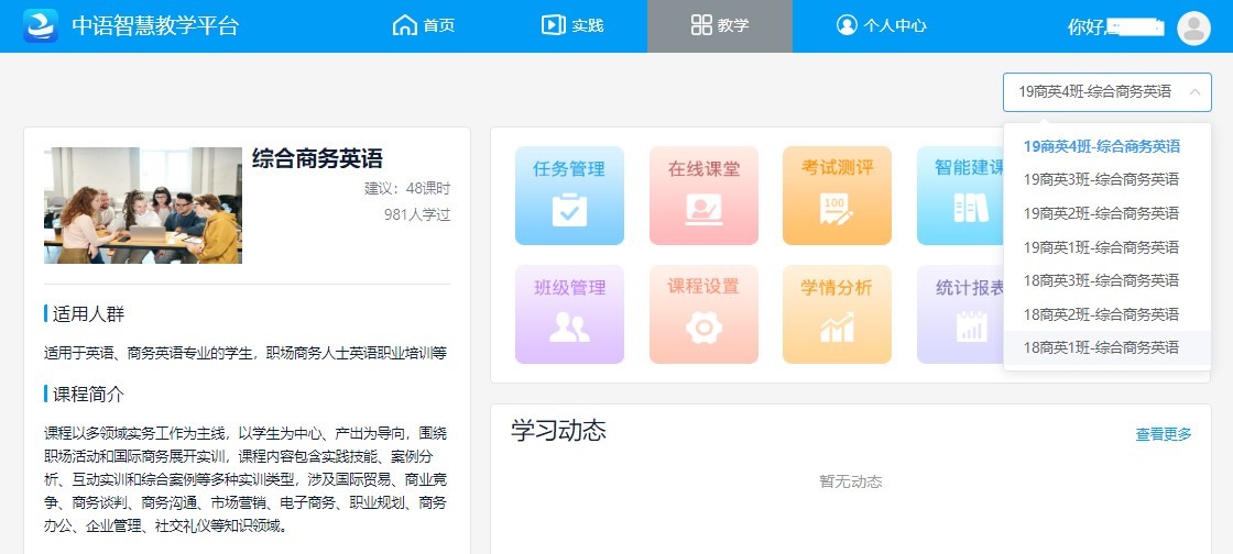 近年来,外国语学院积极探索信息化教学改革和创新校企合作途径。由于疫情原因,学生不能大量进入企业实践,外国语学院积极创新实习方式。经协商,外国语学院与中语智汇科技(厦门)有限公司达成一致,今年暑期,充分利用企业的实习平台共同开展了为期四周的线上仿真实习,外国语学院商务英语专业共有167位学生参加了该次实习。平台以综合商务英语实训为切入点,围绕职场基本规则、礼仪和沟通技巧,通过大量的实践技能任务和案例,为学生们呈现不同商务领域知识运用场景。
