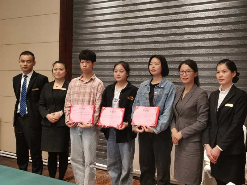 最后酒店为15名志愿者举办欢送会,颁发了优秀实习生的荣誉奖项,分别是前厅部实习生张悦、客房部实习生张美婷、餐饮部实习生徐健强。酒店王黎黎总经理表示虽然工作时间很短暂,但是同学们爱岗敬业、任劳任怨、脚踏实地的职业品格给她留下了深刻的印象,期待和欢迎他们到酒店进行顶岗实习和锻炼。
