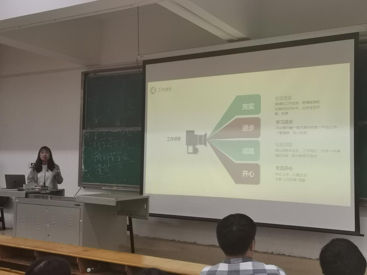 下午4点半,虞雨芳董事长一行为beat365官网商务英语专业300余名学生举办了专题讲座,从宏观上分析我国的经济形势以及国内企业的发展趋势,跨境电商行业和语言类人才的发展前景,鼓励同学们抓住新时代所赋予的机遇,积极参与实践学习,在校期间为就业做好充分准备。beat365官网优秀校友15级商务英语专业毕业生姚木兰从“充实、进步、成就、开心”四个方面分享她的职业成长过程,告诉同学们要坚定专业自信,积极参与社会实践,找准自己的定位,体验课外生活,给学弟学妹们热情的鼓励。