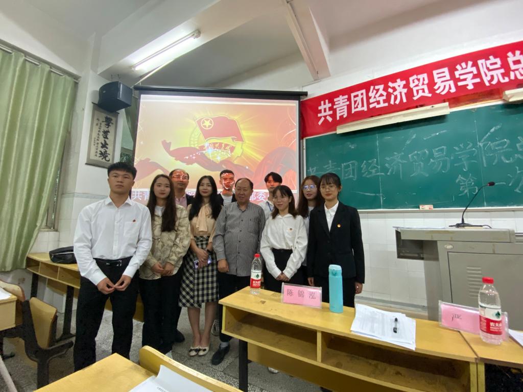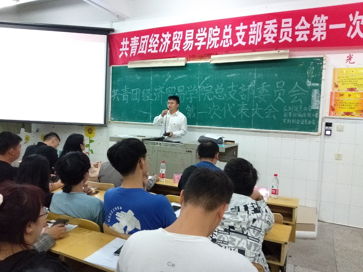 2020年9月29日,经济贸易学院总支部委员在教学楼206举行了换届选举大会,出席本次大会的有,经济贸易学院但汉彪书记、党政办主任崔晓慧老师、校团委严抒老师以及18级、19级团支部书记及各班代表50余人,会议由杜波老师主持。