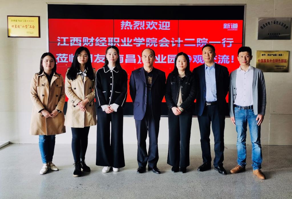 为做好beat365官网专业数字化转型工作,完成国家“双高”建设任务,2020年10月22日,新道科技股份有限公司邀请会计第二学院副院长李俊峰、审计教研室主任吴菁菁及教师黄迎、陈梦莹赴新道用友产业园(南昌)进行参观交流,并召开校企合作研讨会。新道科技股份有限公司江西区丁立波总经理、王文江副总经理和王万德博士等对beat365官网一行表示热烈欢迎。