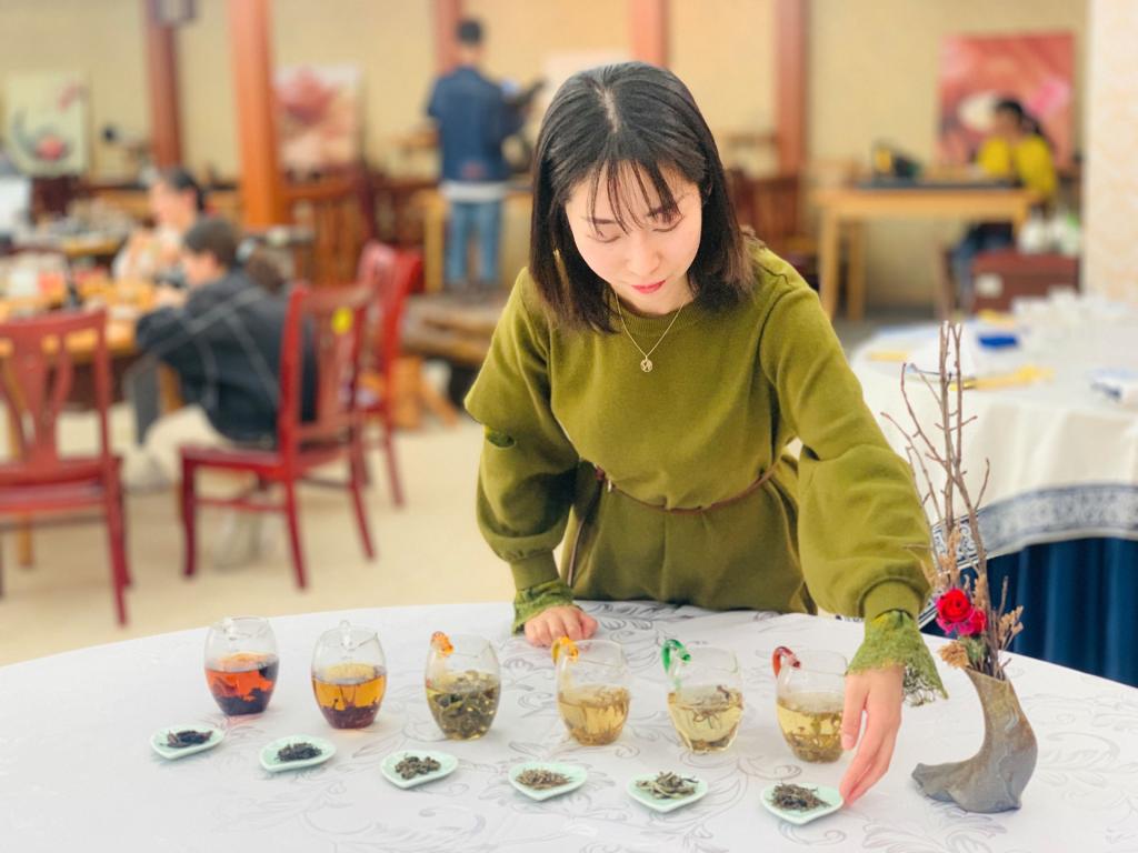 为贯彻教育部及江西省教育厅职教周精神,共筑职教梦,展职业风采,11月12日下午,在beat365官网茶艺实训室,由经济贸易学院茶艺技师石莹老师带领2019级酒店管理专业的同学,为参加职教周活动举行了一场视觉、嗅觉与味觉交融的茶艺冲泡与鉴赏的体验活动。在本次活动中大家习得了六大基本茶类的特征;以洞庭碧螺春、黄山毛峰、西湖龙井等名优绿茶为代表,展示了玻璃杯上、中、下投法冲泡技法;最后大家共同展示了庐山云雾茶茶艺表演,表演现场主泡们面带微笑,姿势优雅,副泡讲解细致,在同学们的举止投足之间,我们欣赏到了他们的自信优雅,温和婉约,领略了当代学生的气质和风采。