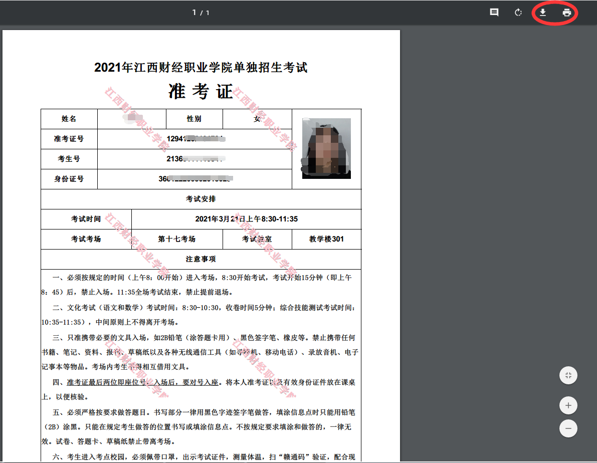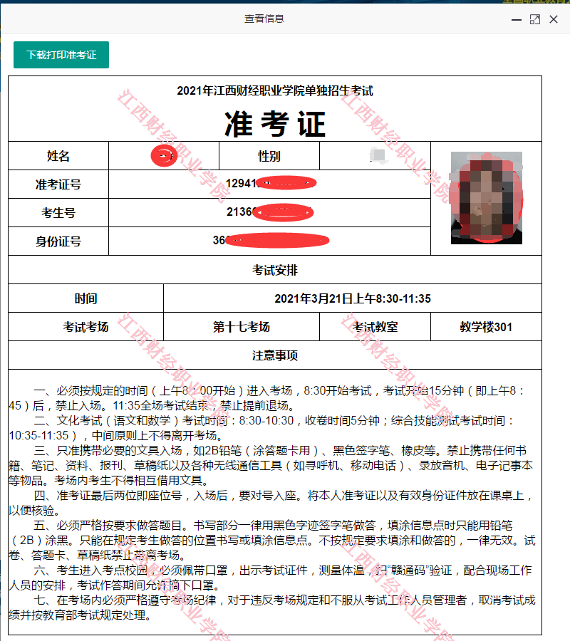 2021年单独招生考试准考证打印流程