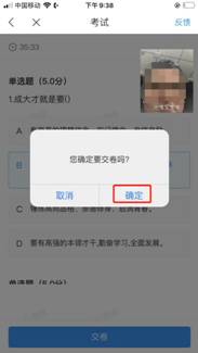 考生必须先在学习通提交试卷,并在学习通反馈:本人确认已答题完毕,申请离开考场,待监考老师语音回复确认后方可离开会议。