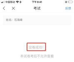 6.成功交卷后,系统会提示“交卷成功”,请务必手动交卷,否则将没有考试成绩。