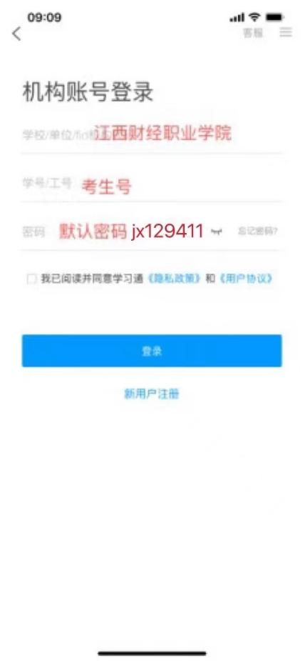 1)打开学习通,在登录界面选择“其他登录方式”,依次输入“beat365正版唯一入口必一”、“考生号”、“jx129411”,勾选“我已阅读并同意学习通《隐私政策》和《用户协议》”,再点击“登录”。