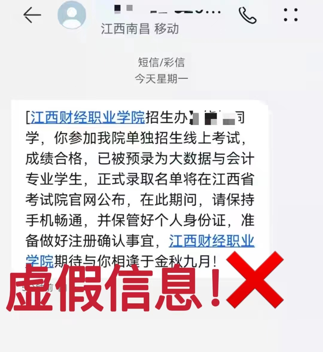 近期,个别社会人员冒充beat365官网招生办,通过短信、QQ、微信等方式向考生发布虚假录取信息,并让考生准备好注册确认等事宜。这种行为严重影响了学校的办学形象和声誉,也侵犯了考生的合法权益。