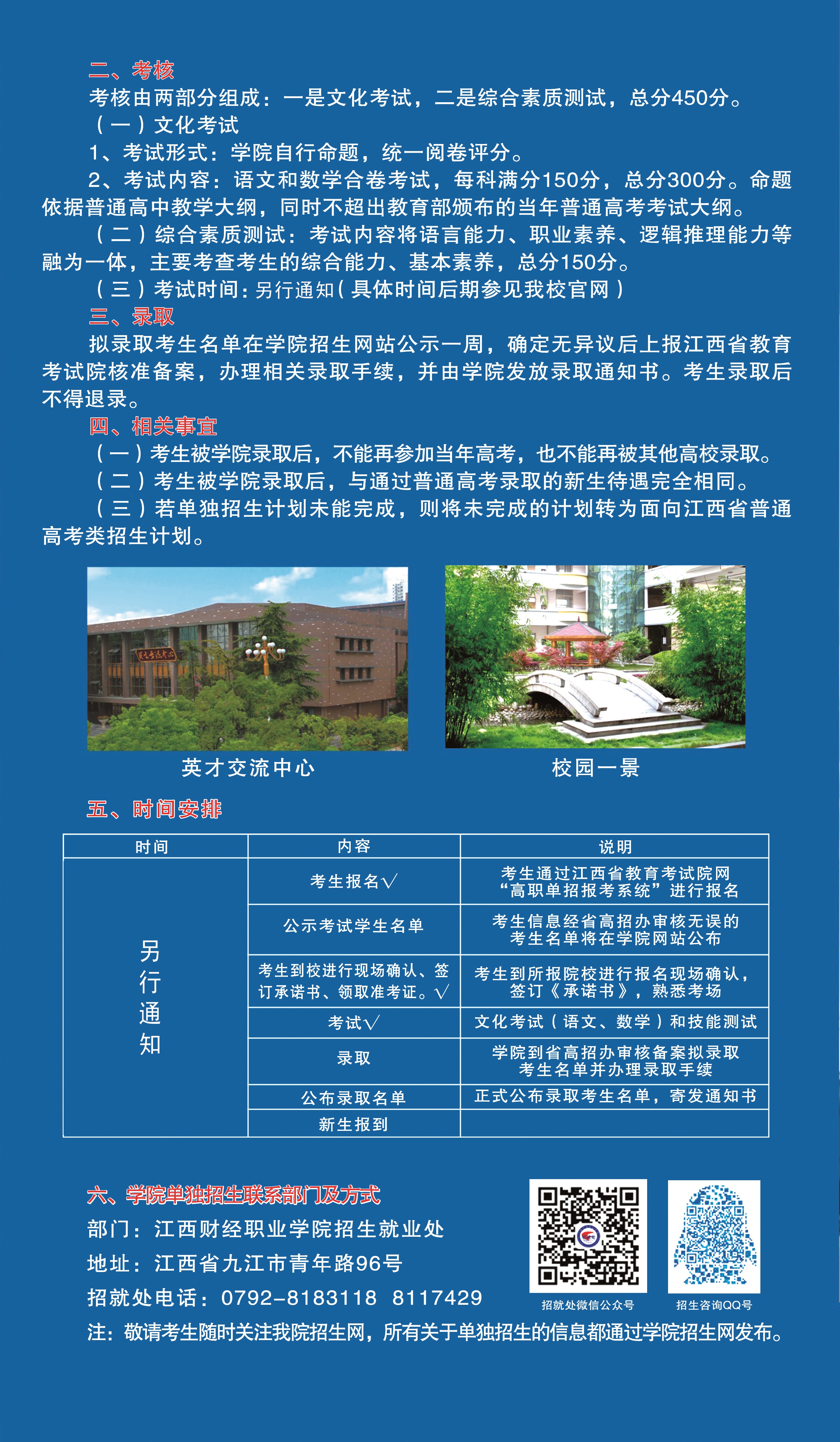 根据江西省教育考试院有关2020年高职单招延期的要求,beat365官网原定于3月2-7日报名,3月14日现场确认,3月15日考试等单招各项工作将延期进行,调整后的具体时间安排视疫情防控情况另行通知,请考生密切关注省教育考试院官网和beat365官网官网。