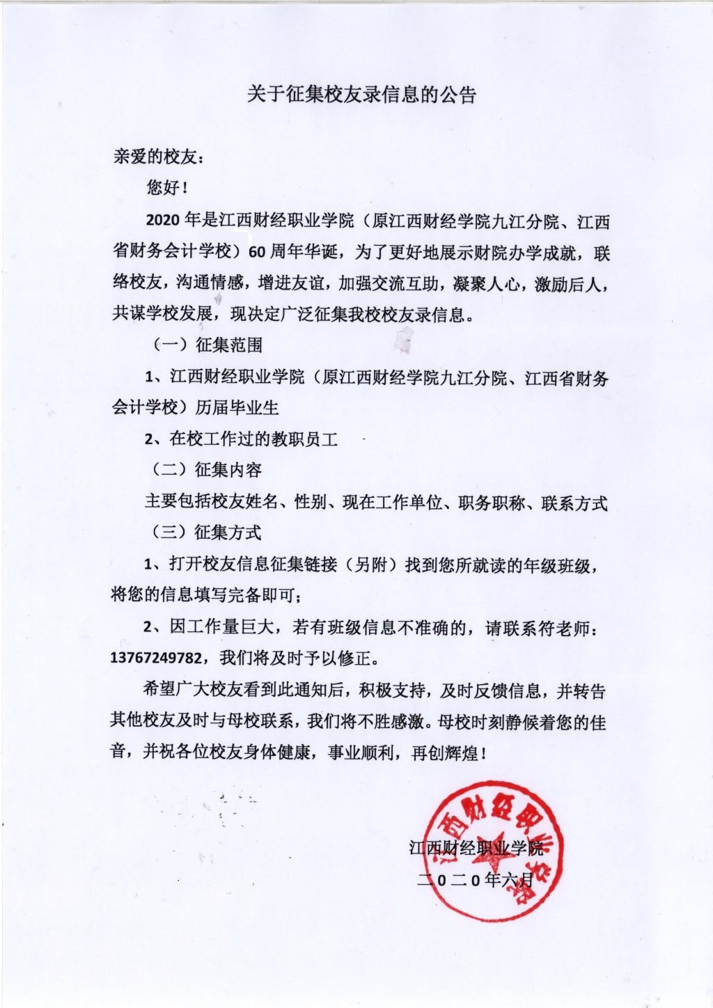 beat365正版唯一入口必一(原江财九江分院、江西财校)校友录信息征集链接