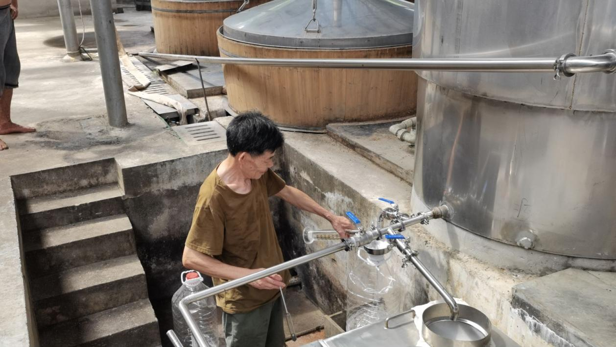 图为酿酒师测量山药酒度数。中国青年网通讯员 龚尔洁 摄