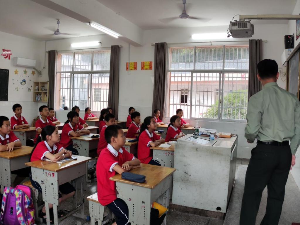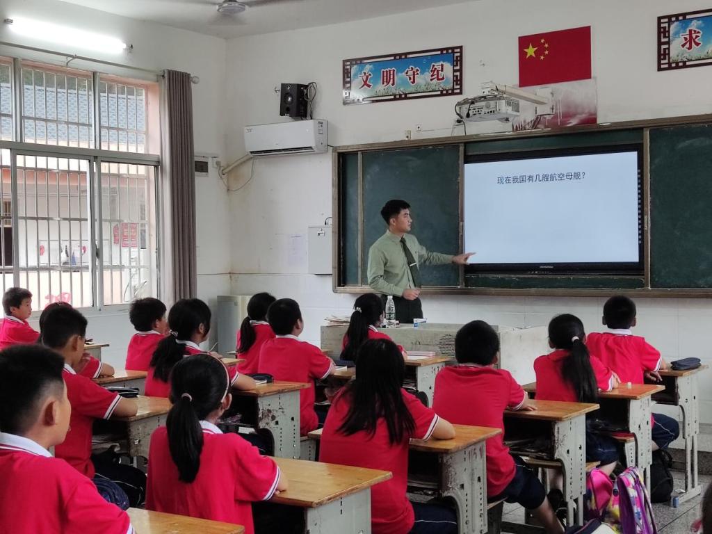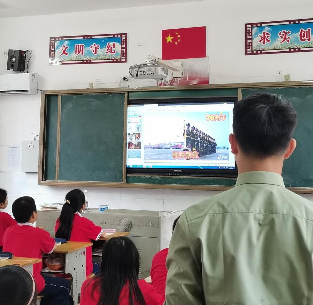 图为罗少炫给学生们播放建国70周年阅兵式。中国青年网通讯员 龚尔洁 摄