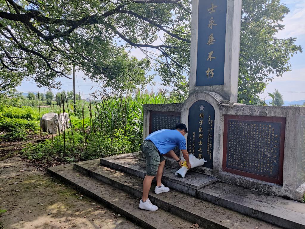 图为青春筑梦队在胡子良烈士墓处留影纪念。中国青年网通讯员 龚尔洁 摄
