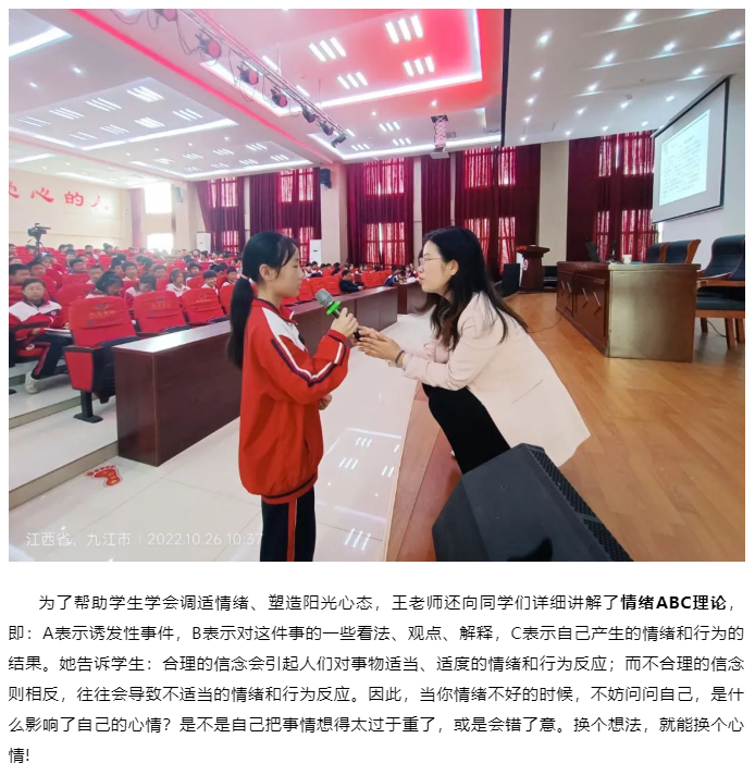 赣鄱心理:百场辅导进百校137 | 心海导航,青春绽放——王美娟老师走进湖口县第四中学