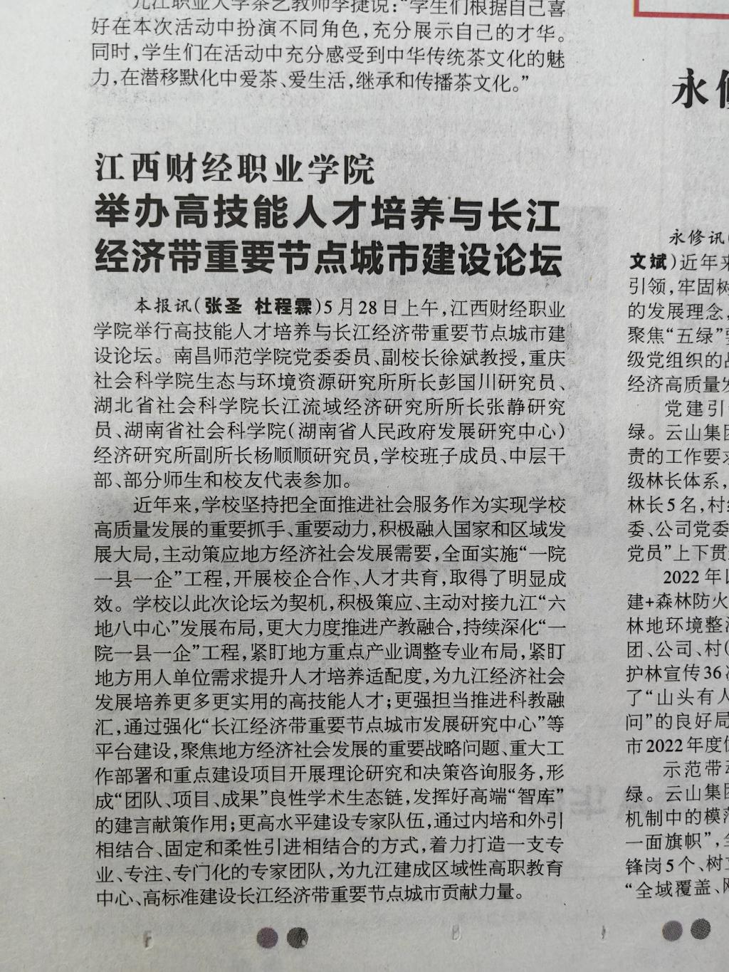 九江日报数字报-举办高技能人才培养与长江经济带重要节点城市建设论坛 http://jjrb.jjxw.cn/html/2023-05/30/content_85763_16160554.htm