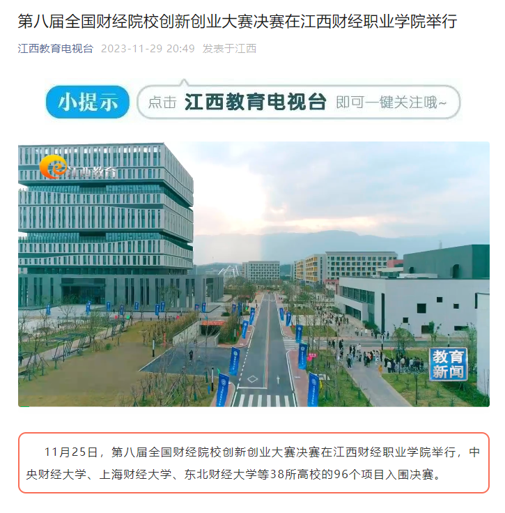 江西教育电视台:第八届全国财经院校创新创业大赛决赛在beat365正版唯一入口必一举行