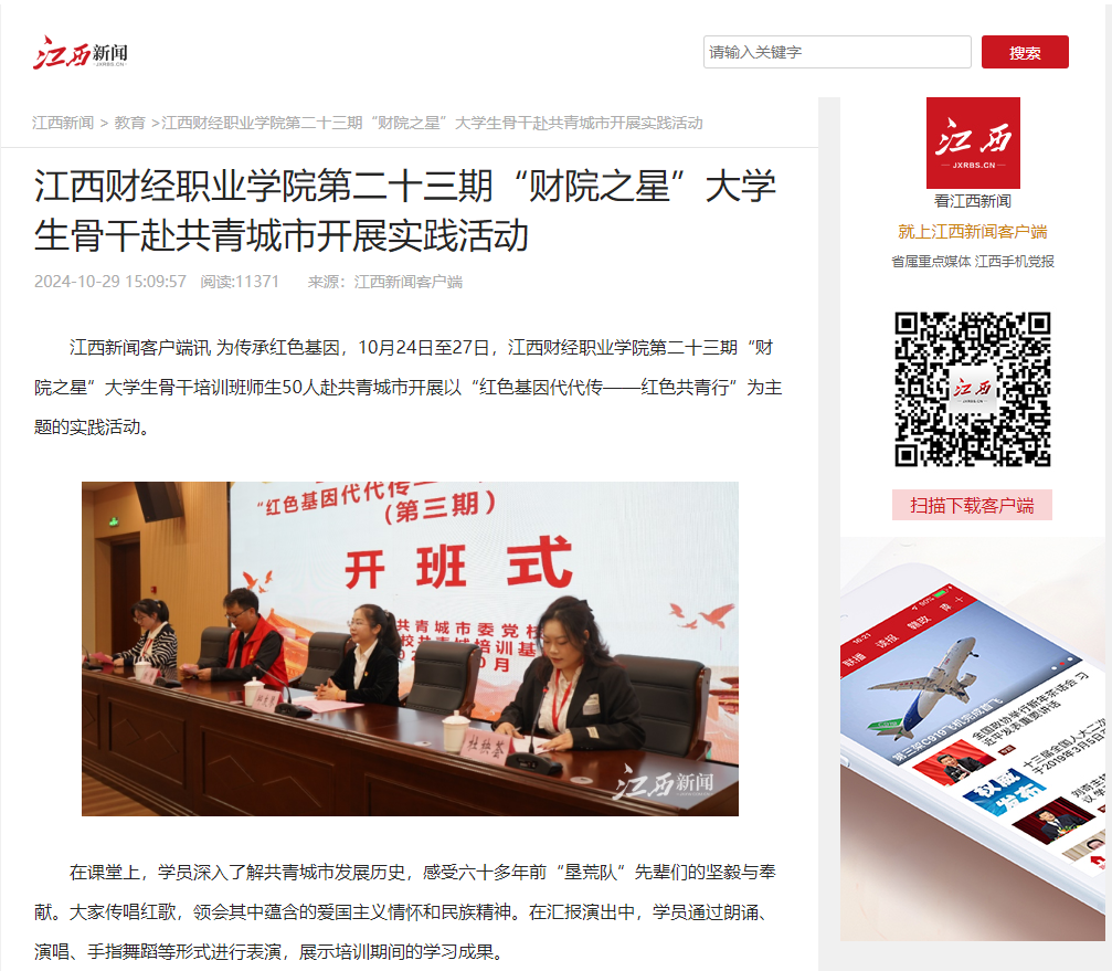 【江西新闻报道】beat365正版唯一入口必一第二十三期“财院之星”大学生骨干赴共青城市开展实践活动