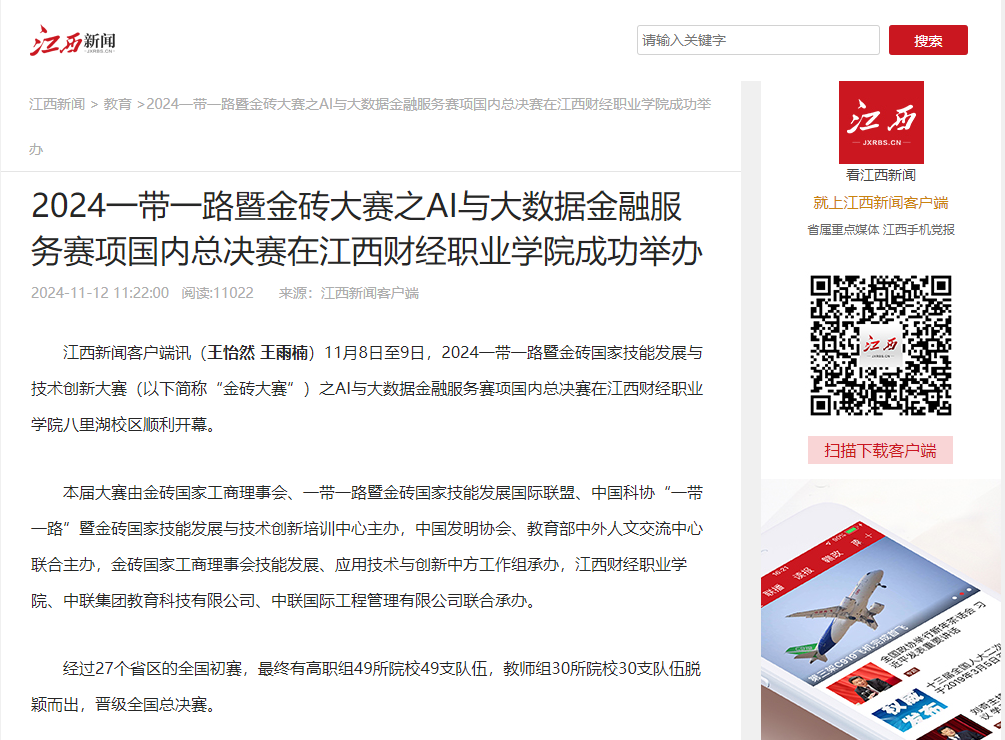 【江西新闻报道】2024一带一路暨金砖大赛之AI与大数据金融服务赛项国内总决赛在beat365正版唯一入口必一成功举办