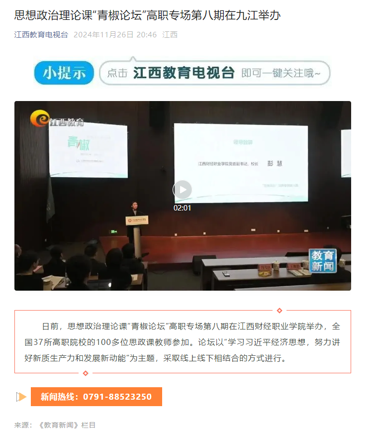(江西教育电视台报道)思想政治理论课“青椒论坛”高职专场第八期在九江举办