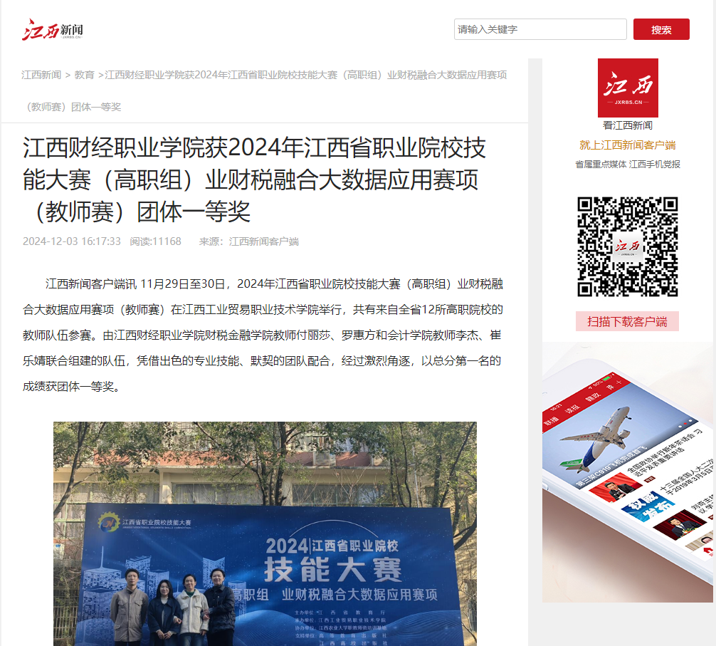 beat365正版唯一入口必一获2024年江西省职业院校技能大赛(高职组)业财税融合大数据应用赛项(教师赛)团体一等奖