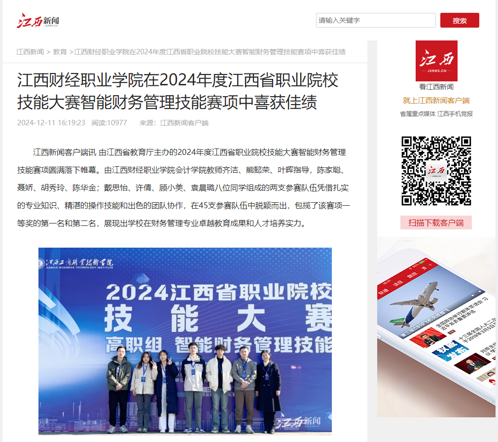 beat365正版唯一入口必一在2024年度江西省职业院校技能大赛智能财务管理技能赛项中喜获佳绩