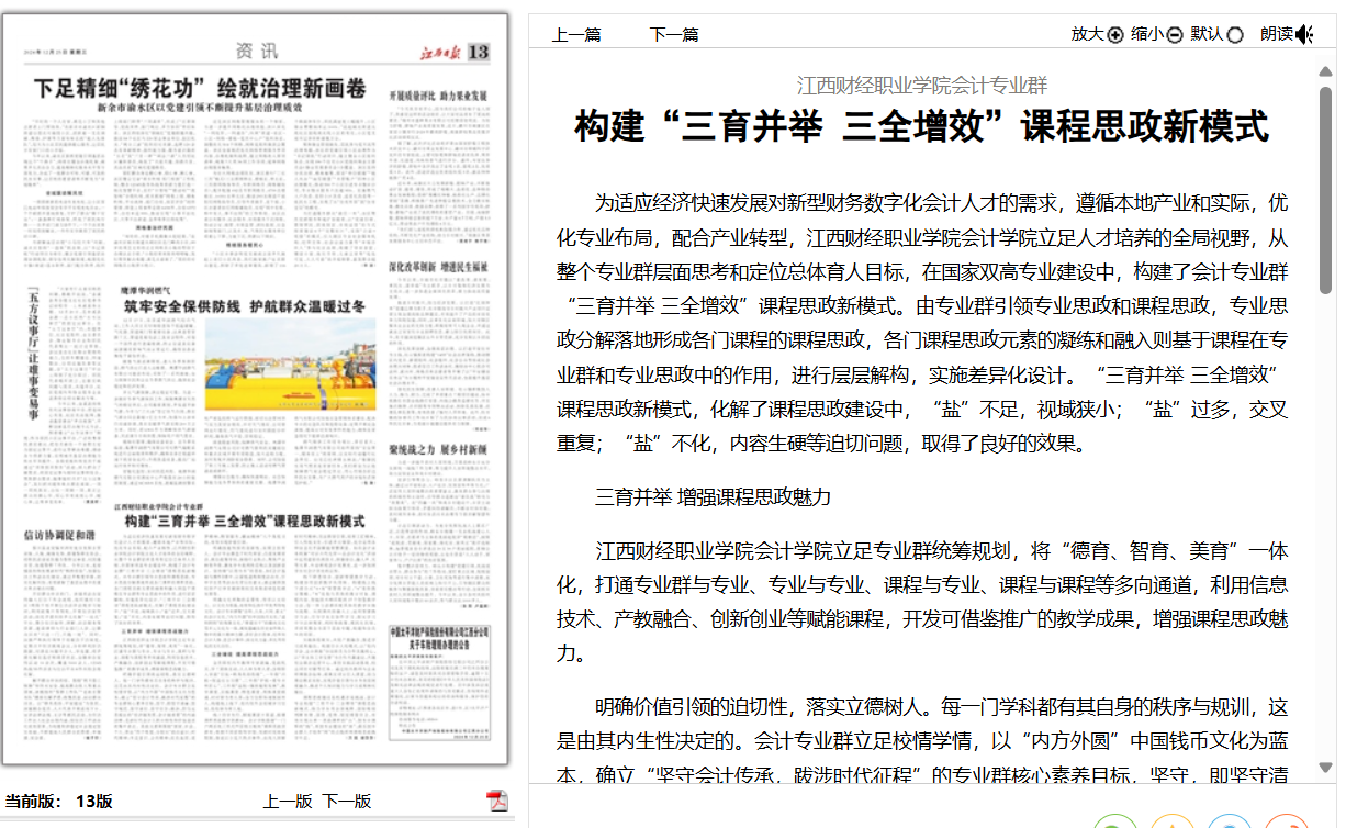 (《江西日报》报道)构建“三育并举 三全增效”课程思政新模式