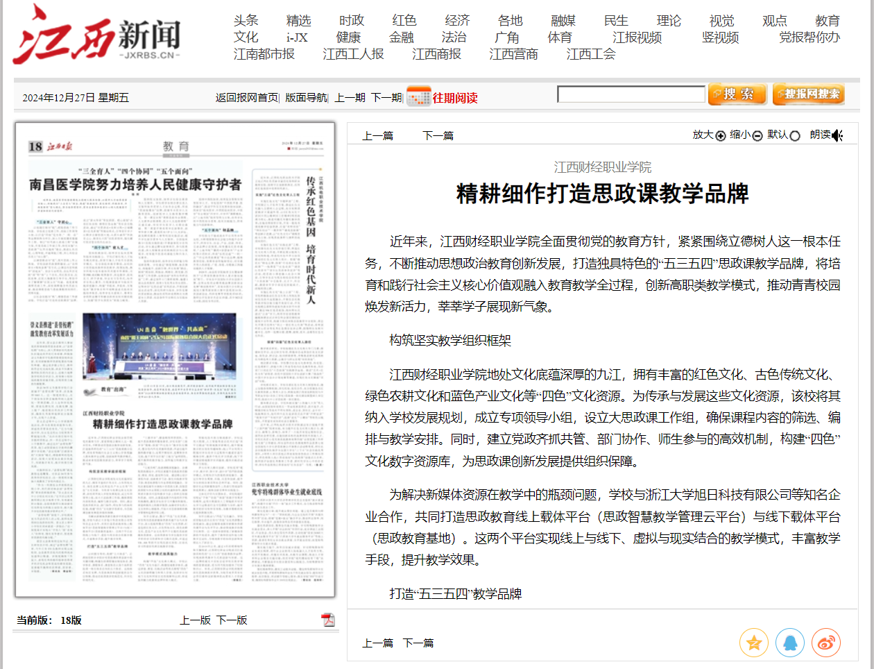 (《江西日报》报道)精耕细作打造思政课教学品牌