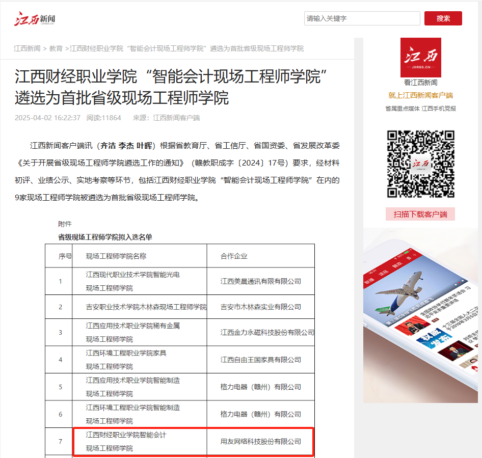 (江西新闻报道)beat365正版唯一入口必一“智能会计现场工程师学院”遴选为首批省级现场工程师学院