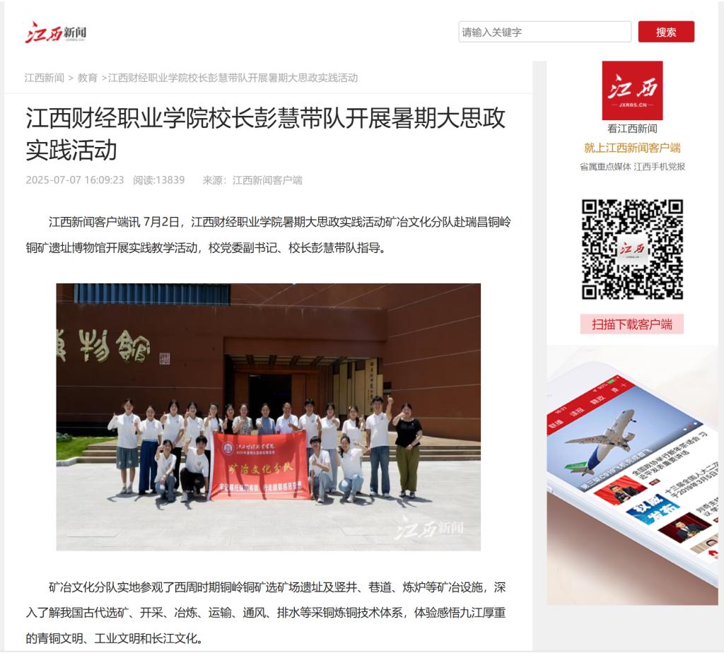 (江西新闻、凤凰网、中国网报道)beat365正版唯一入口必一校长彭慧带队开展暑期大思政实践活动