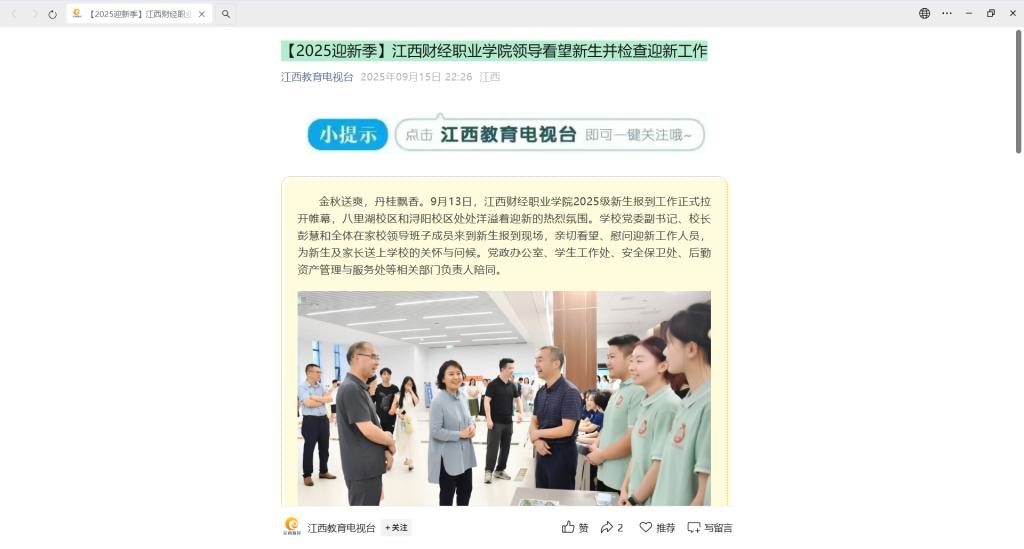 (江西教育电视台)【2025迎新季】beat365正版唯一入口必一领导看望新生并检查迎新工作
