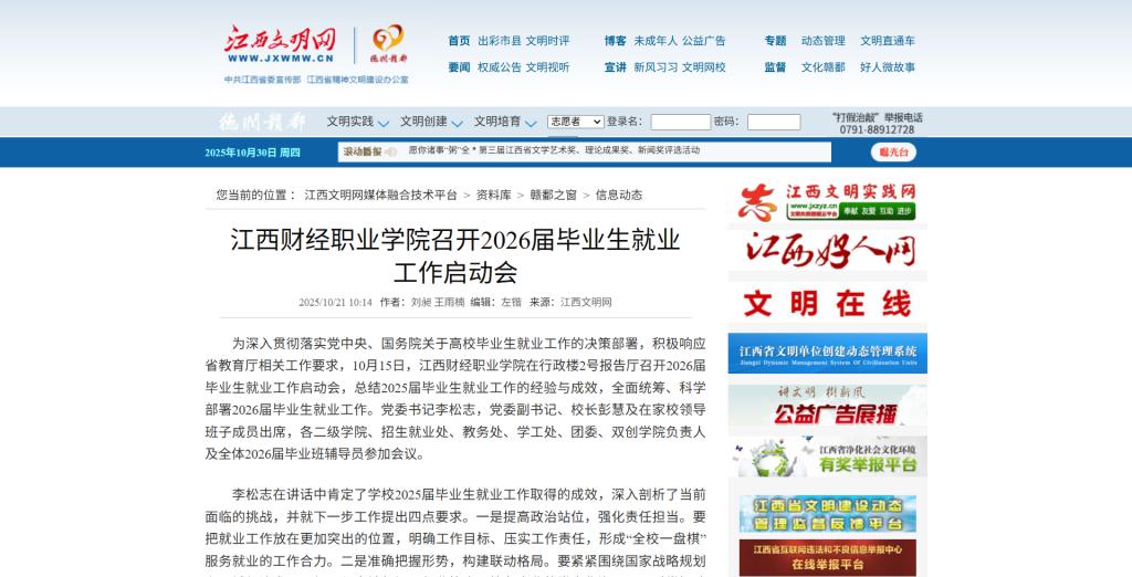 (江西文明网)beat365正版唯一入口必一召开2026届毕业生就业工作启动会