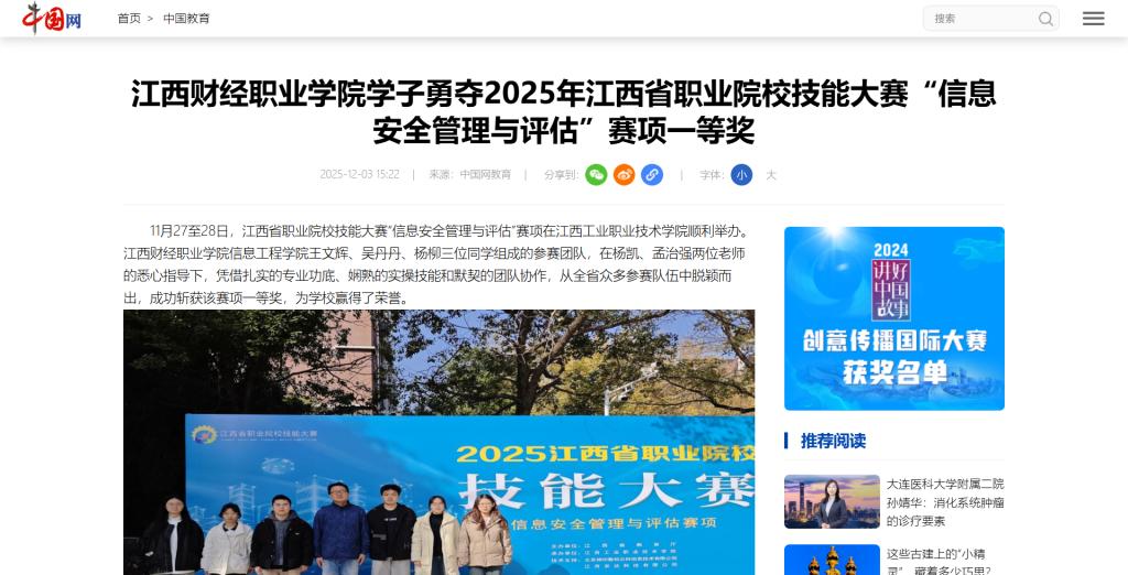 (中国网)beat365正版唯一入口必一学子勇夺2025年江西省职业院校技能大赛“信息安全管理与评估”赛项一等奖