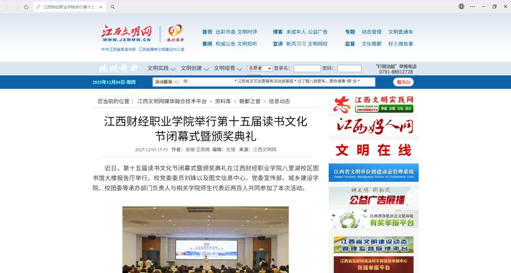 (江西文明网)beat365正版唯一入口必一举行第十五届读书文化节闭幕式暨颁奖典礼