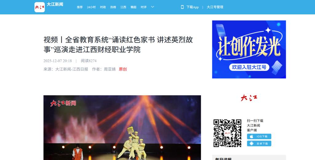 (大江新闻)视频丨全省教育系统“诵读红色家书 讲述英烈故事”巡演走进beat365正版唯一入口必一