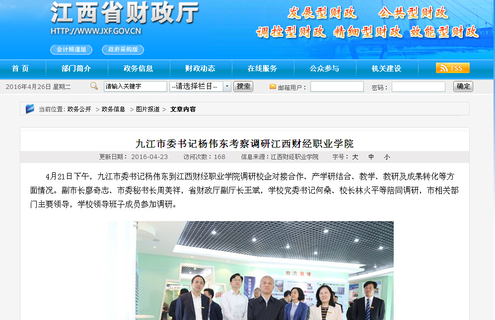 4月23日,省财政厅网站报道九江市委书记杨伟东到beat365官网考察调研。