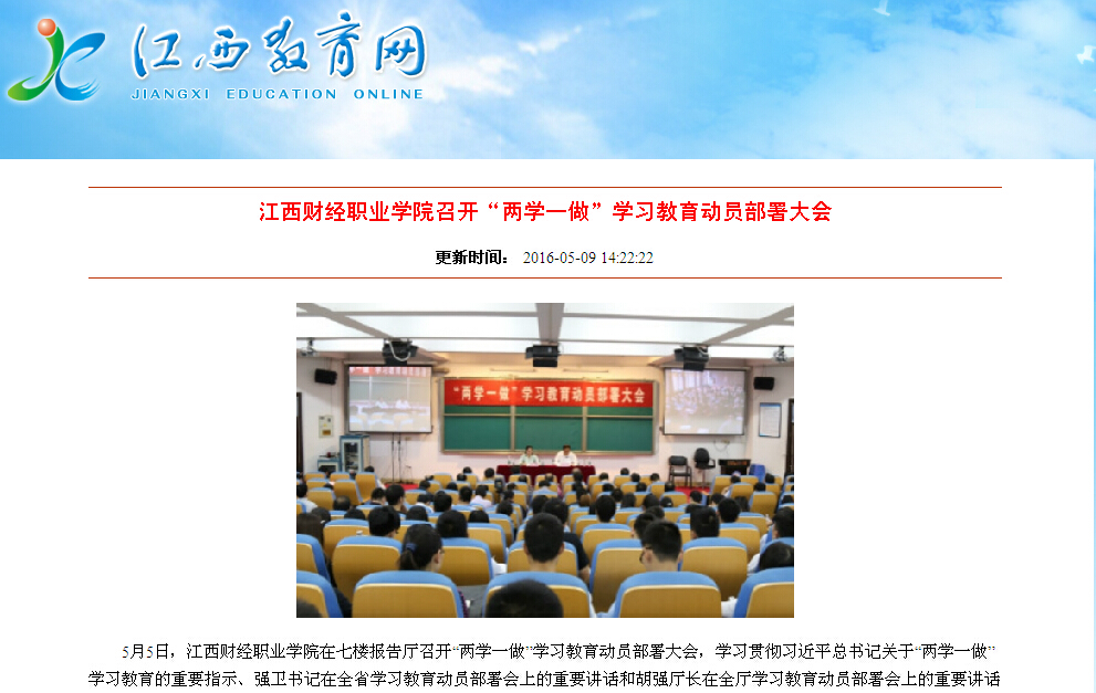 5月10日,省教育厅网站报道beat365官网召开“两学一做”学习教育动员部署大会。