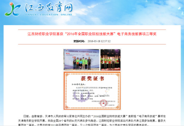 5月18日,省教育厅网报道beat365官网喜获喜获“2016年全国职业院校技能大赛”电子商务技能赛项二等奖。