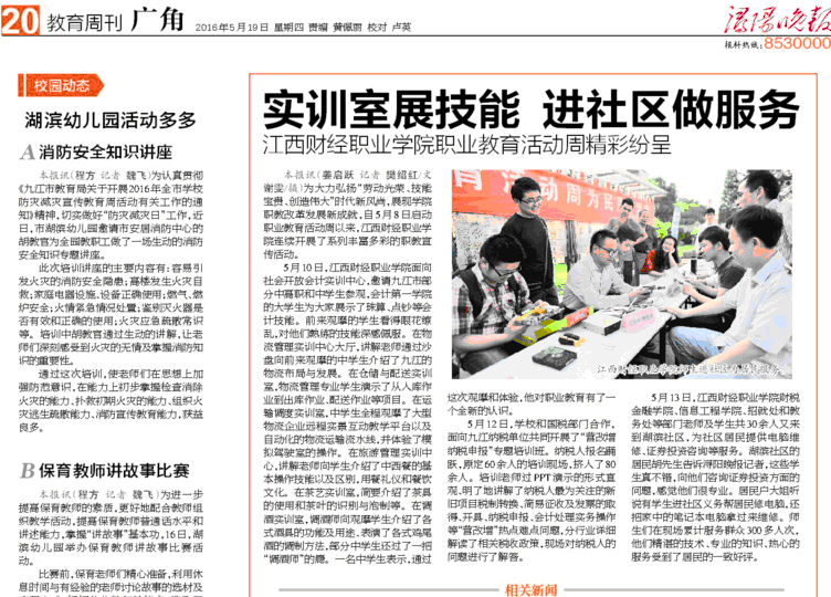 5月19日,《浔阳晚报》报道beat365官网开展职业教育活动周情况。