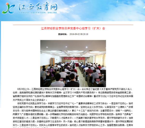 9月2日,江西教育网报道beat365官网党委中心组召开党委中心组学习(扩大)会。