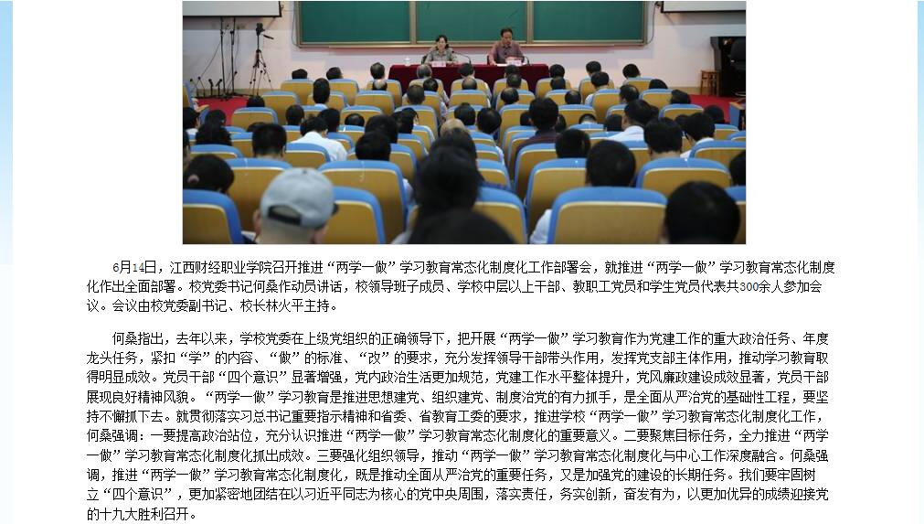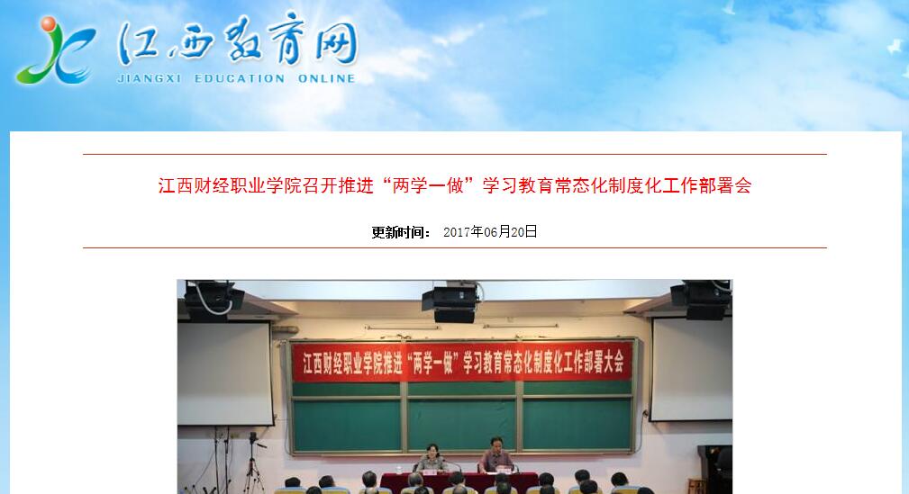 6月20日,江西教育网报道beat365官网召开推进“两学一做”学习教育常态化制度化部署会。