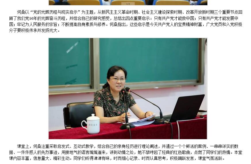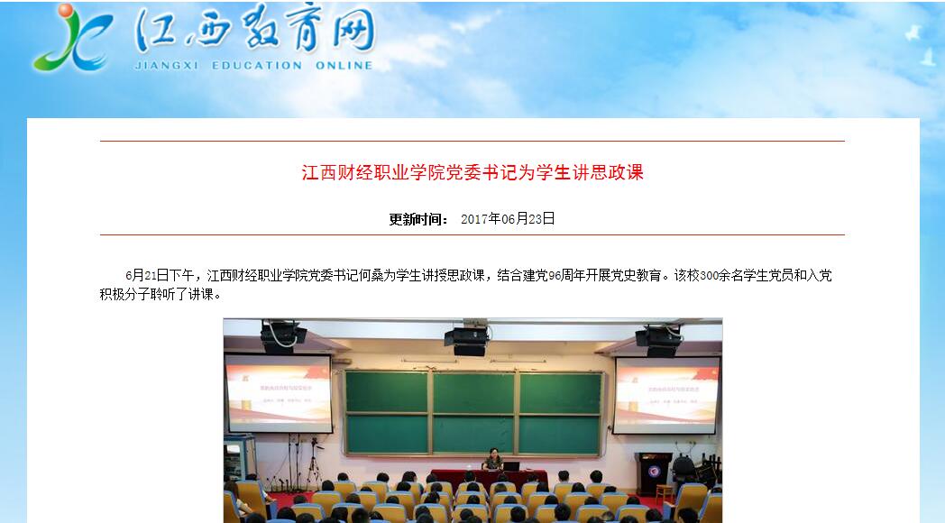 6月23日,江西教育网报道beat365官网党委书记何桑为学生讲授思政课。