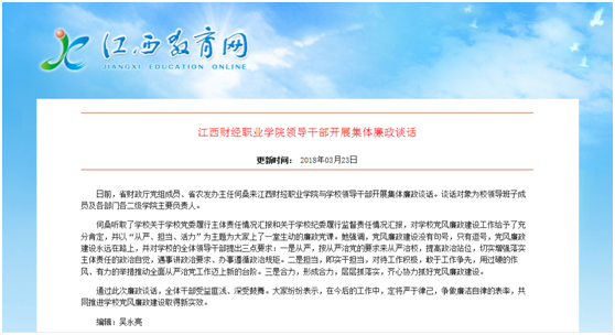 日,江西教育网报道beat365官网领导干部开展集体廉政谈话活动。