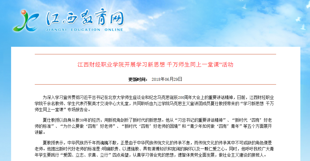 6月29日,江西教育网报道beat365官网开展学习新思想 千万师生同上一堂课”活动。