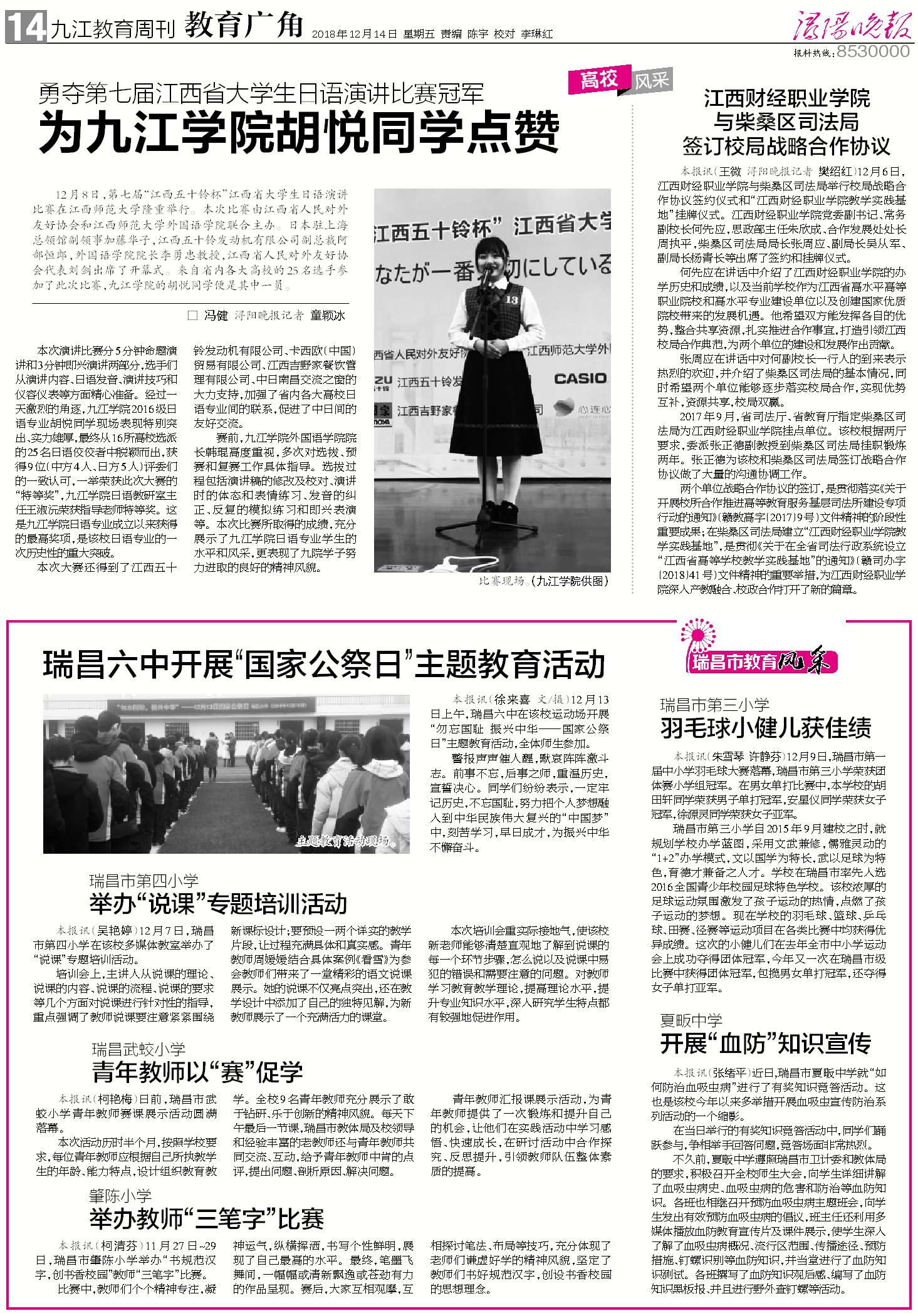 12月14日,《浔阳晚报》报道beat365官网与柴桑区司法局签订校局战略合作协议一事。