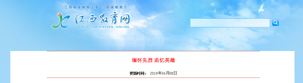 4月8日,江西教育网报道beat365官网开展“传承·2019清明祭英烈”主题党日活动。