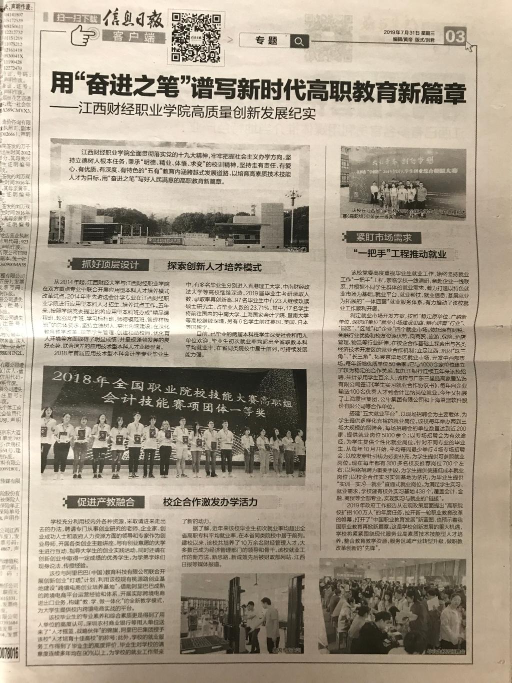 信息日报:用“奋进之笔”谱写新时代高职教育新篇章——beat365正版唯一入口必一高质量创新发展纪实