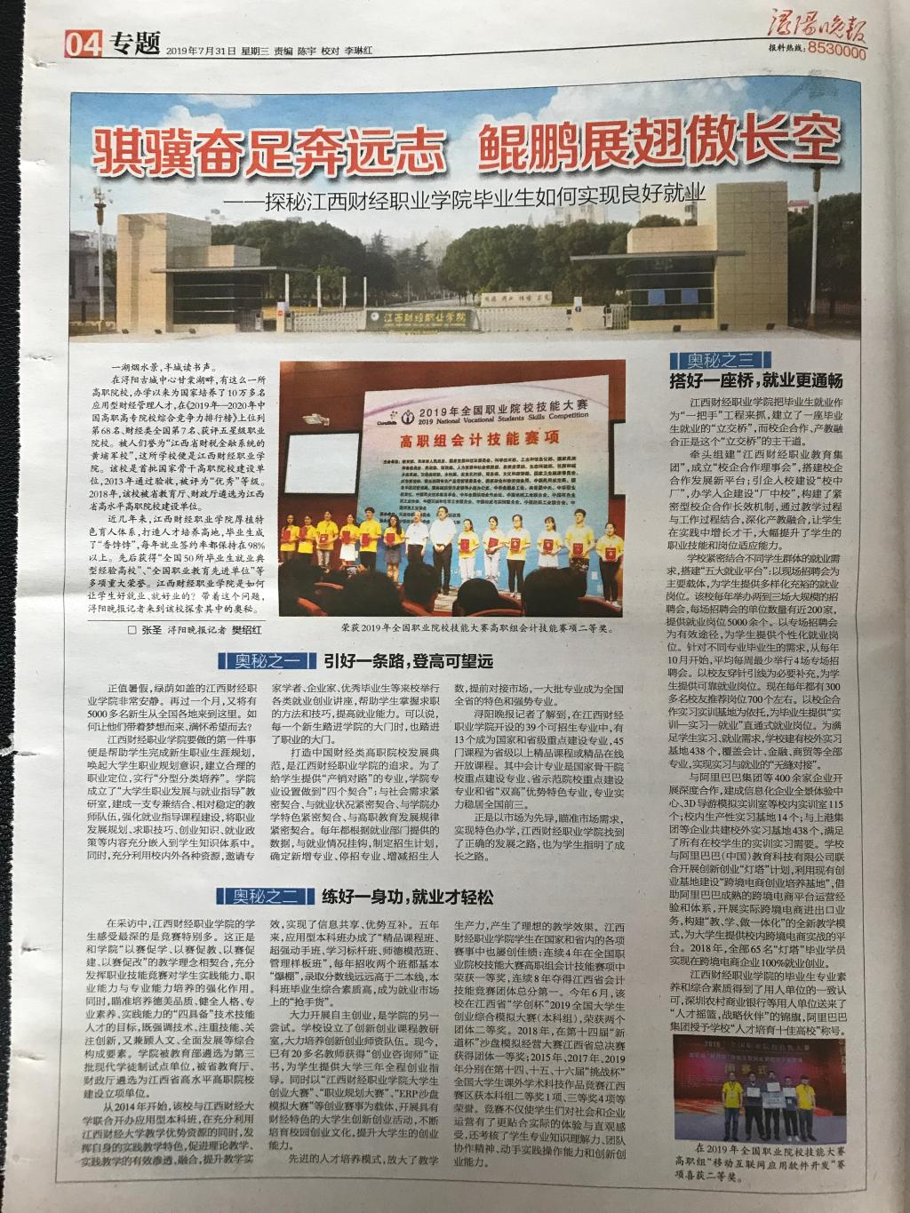 7月31日,《浔阳晚报》整版报道beat365官网如何实现毕业生“好就业、就好业”的先进经验。