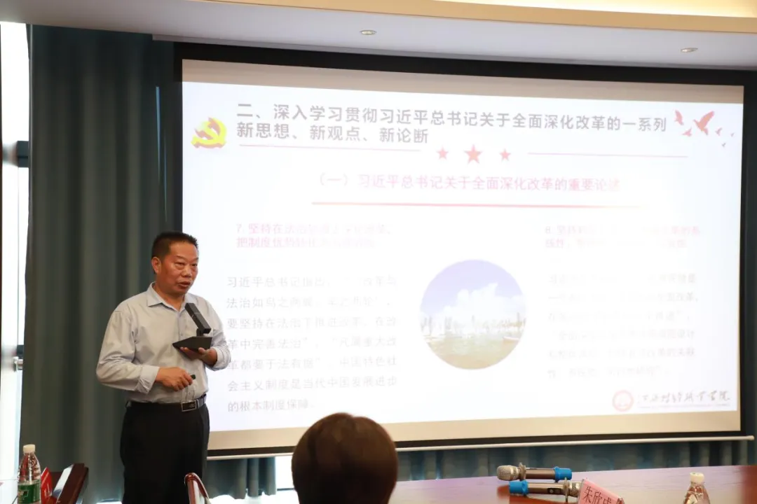 17日上午,beat365官网马克思主义学院院长朱欣成教授为与会人员进行了《深入学习贯彻党的二十届三中全会精神》专题授课,从全会的主题、习近平总书记关于全面深化改革的一系列新思想新观点新论断及进一步全面深化改革的总体思路与系统部署三个方面深入浅出地解读了会议精神,并针对团员青年落实党的二十届三中全会精神提出了具体建议。