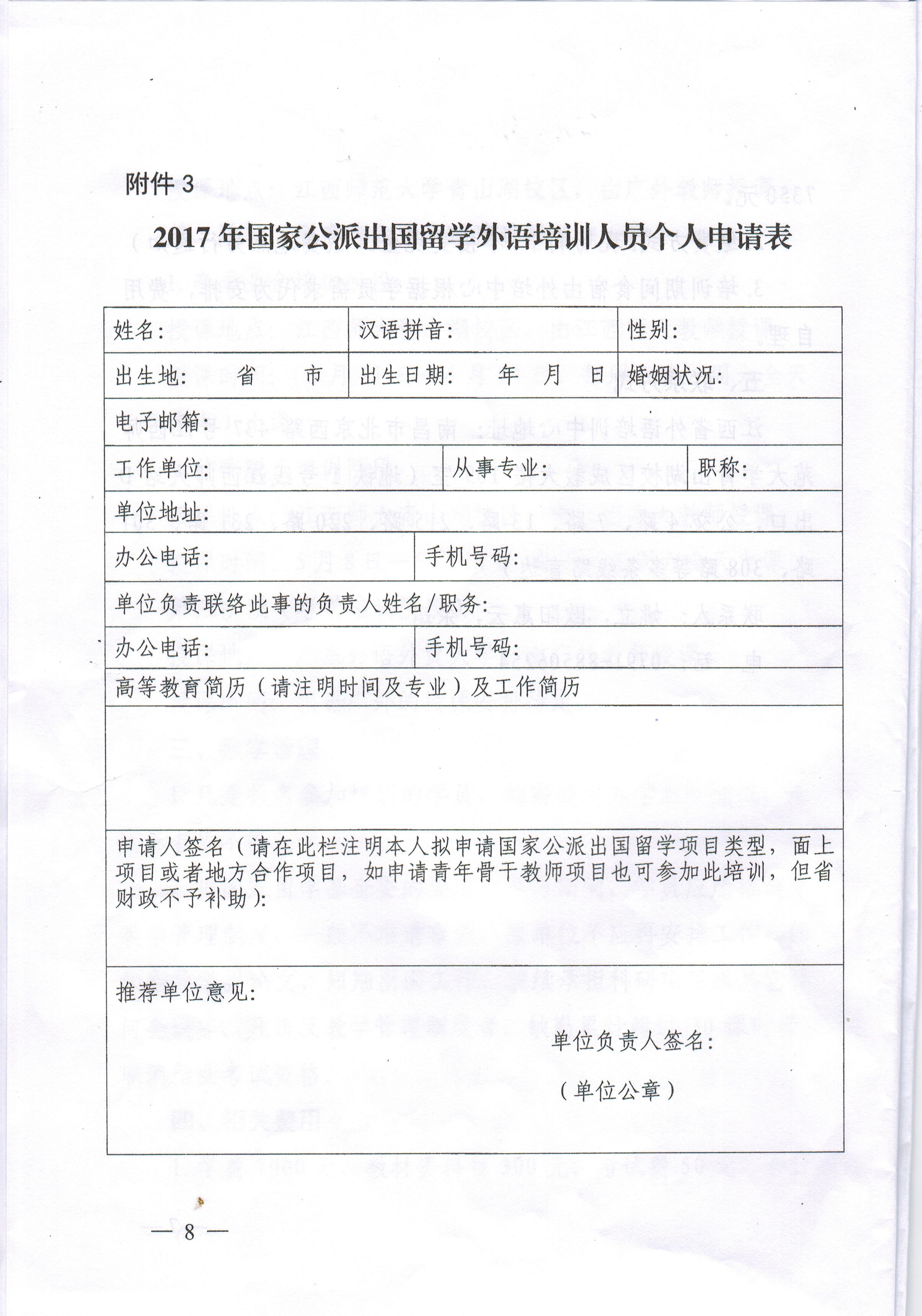 1、符合条件人员个人申报,填写《2017年国家公派出国留学外语培训人员个人申请表》,纸质表于2016年12月2日前报送至组织人事处1013室(电子稿发送至rsc2018@126.com邮箱,文档请标明个人姓名+表格名称)。