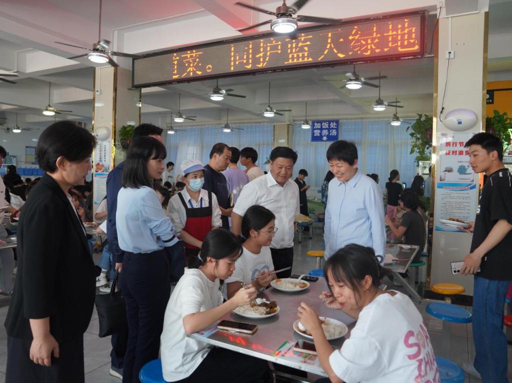 刘力群一行在浔阳校区教学楼和南区食堂实地查看了学校教育教学和食品卫生安全情况。随后,一行人前往八里湖新校区,刘彪文和彭慧汇报了beat365官网新校区总体建设以及学校搬迁入驻、开学、校园管理等情况。